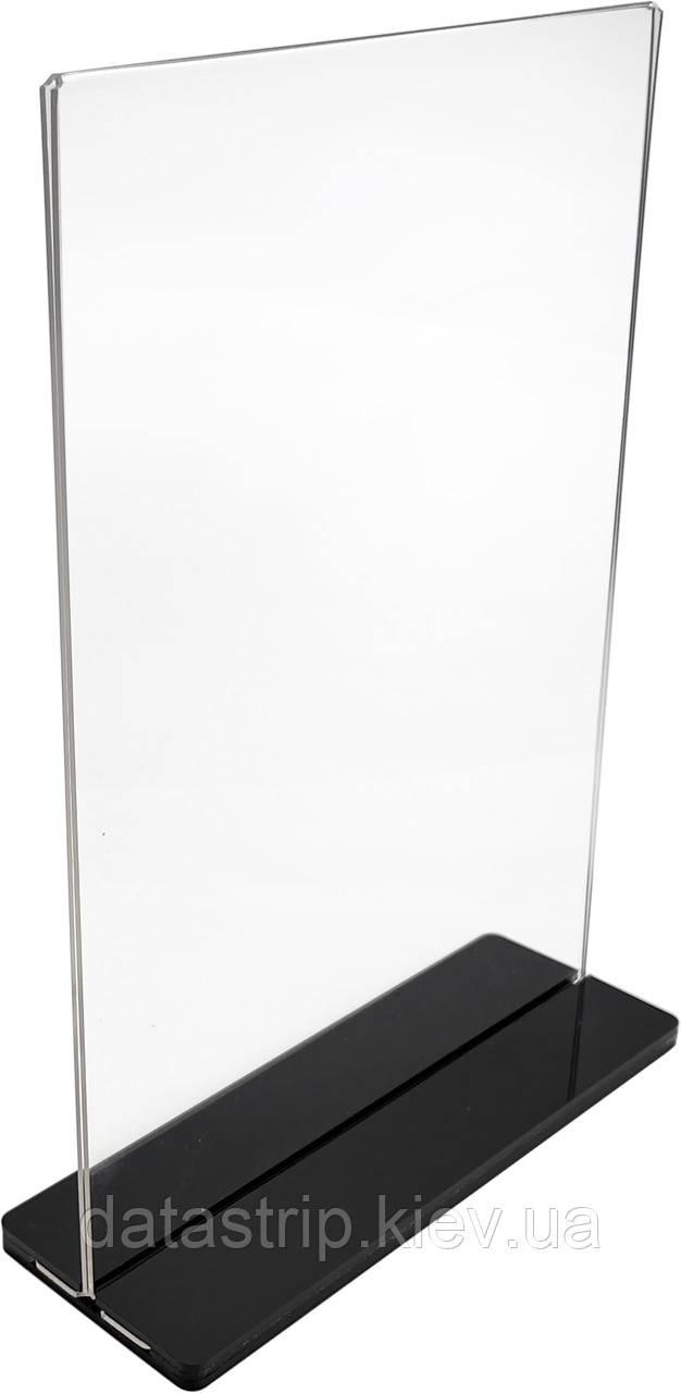Менюхолдер А4 для кафе і барів верикальний, на плоскій підставці, чорний, акриловий