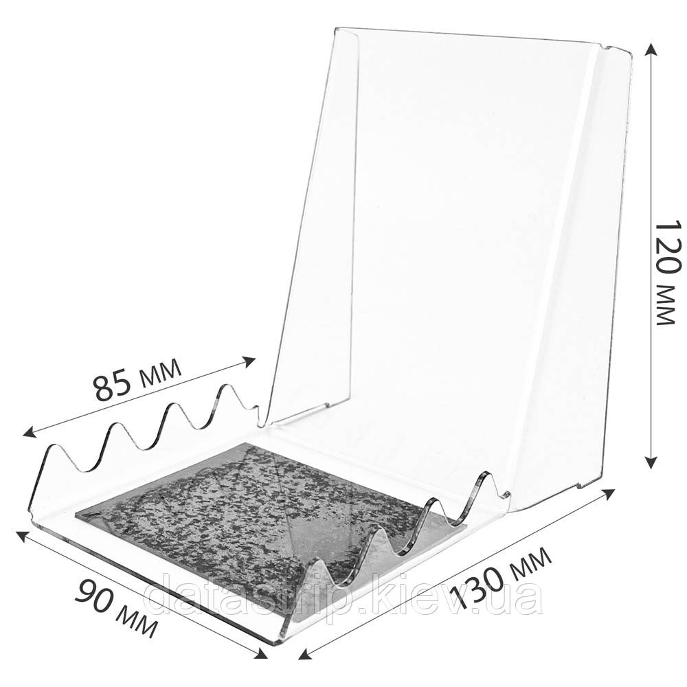 Пластикова опора для викладання плоских упаковок на магніті. Підходить для всіх категорій товару, де є необхідність презентувати продукт "обличчям" до покупця. Конструкція підставок також є актуальною і для попередників електронних книг - їх паперових аналогів.