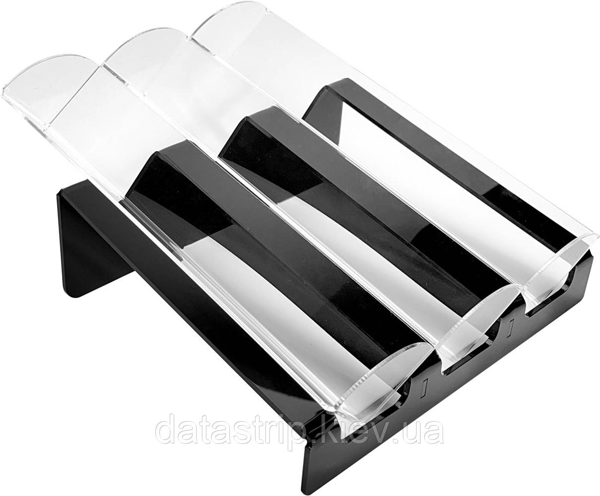 Чорна підставка для макарун на 3 комірки по 25см, стелаж для презентації продукції у вітринах